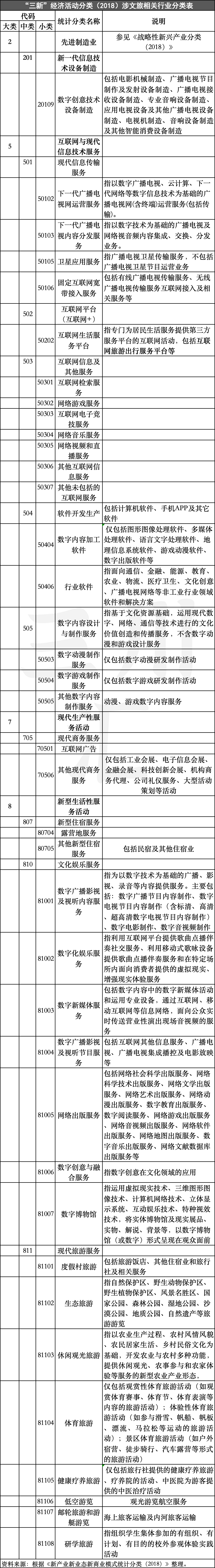 2018版的“三新”活动范围分类,涵盖了现代农林牧渔业、先进制造业、新型能源活动、节能环保活动、互联网与现代信息技术服务、现代技术服务与创新创业服务、现代生产性服务活动、新型生活性服务活动、现代综合管理活动等9大类,以及63个中类和353个小类。其中,文化、广播影视、新闻出版、旅游等领域的活动也被纳入其中,涵盖4大类、10个中类和37个小类(并非全部)。